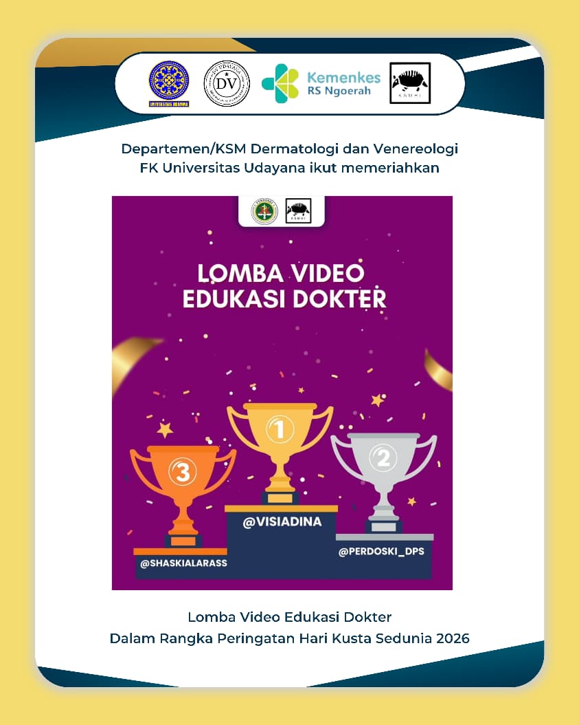 Keluarga Besar Departemen/KSM Dermatologi dan Venereologi FK Universitas Udayana/RSUP Prof. Dr. I.G.N.G. Ngoerah berhasil meraih Juara 2 pada Lomba Video Edukasi Dokter dalam Rangka Peringatan Hari Kusta Sedunia 2026